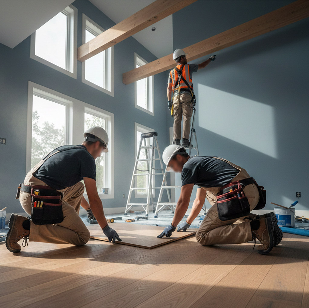 SPC, parquet, vinyl, and carpet flooring – installed with precision for long-lasting elegance