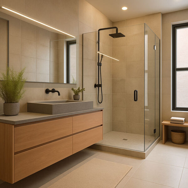 Our expert team handles every detail — plumbing, tiling, sanitary fittings, lighting, and décor — ensuring a bathroom that’s not only beautiful but also functional and durable. Whether you need a complete bathroom makeover, custom shower area, or vanity upgrade, we create personalized designs that match your style and budget.